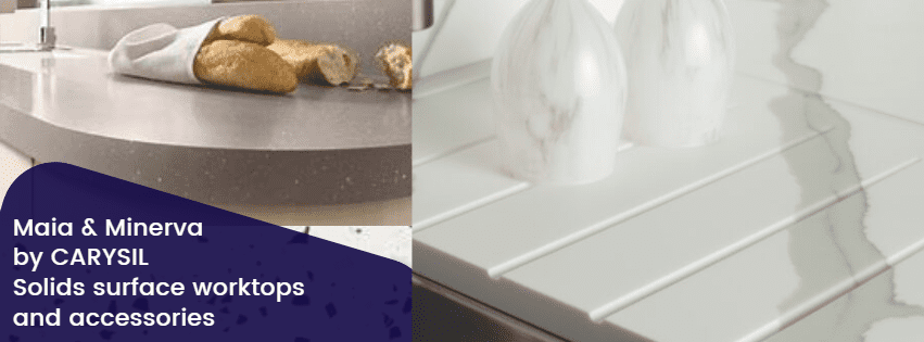 maia worksurfaces is a stylish and durable range of solid surface worktops from Carysil. Seamless joins and a silky smooth finish make maia’s designer worksurfaces a luxurious addition to your home