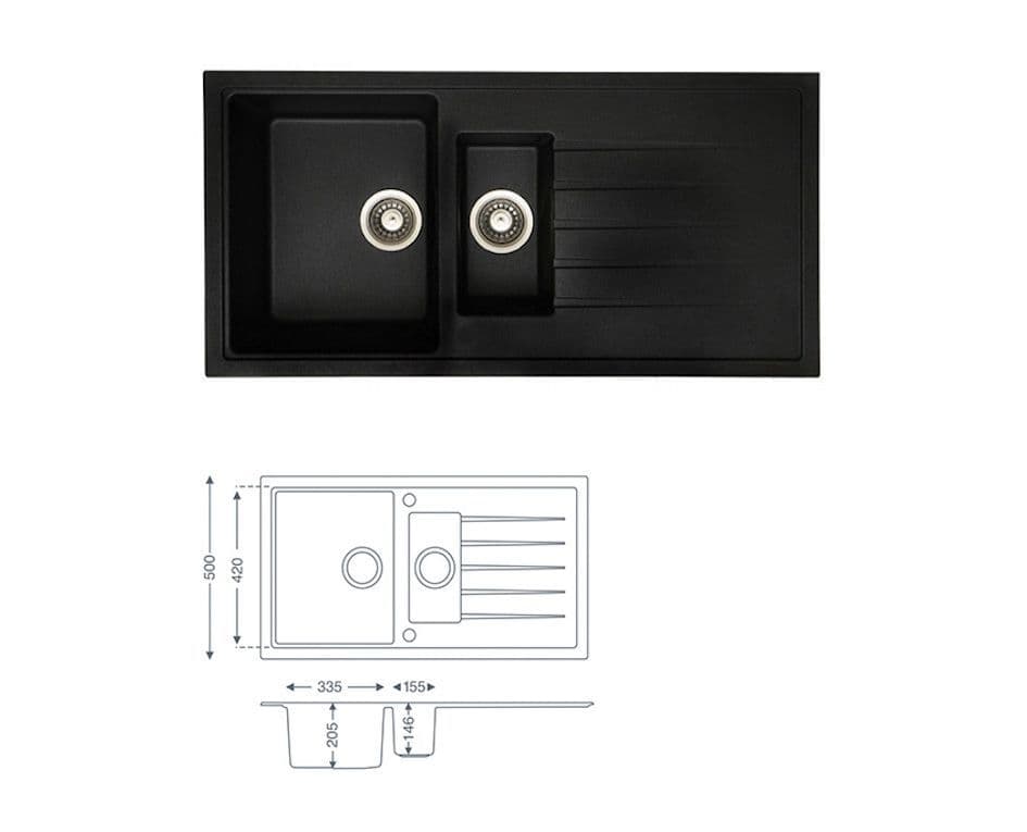 Home / Sinks & Taps / River Full Range / River Range - Wraysbury - Graphite Black Inset Sink - One & Half Bowl - Granite 1000 x 500 mm River Range - Wraysbury - Graphite Black Inset Sink - One & Half Bowl - Granite 1000 x 500 mm Choose an Option: Granite One & Half Bowl 1000 x 500 L/H Drainer Granite One & Half Bowl 1000 x 500 R/H Drainer 1.5 x Bowl Plumbing Kit UKH040 Chopping Board - Black Glass Folding Drainer Mat £214.00 (£178.33) £0.00 Description River Range - Wraysbury - Graphite Black Inset Sink - One and a Half Bowl Granite 1000 x 500mm Overall Size: 1000mm x 500mm Main Bowl Depth: 205mm Half Bowl Depth: 146mm ■ 80% Quartz content with ultra clean anti-bacterial formula ■ Can be installed as LH or RH drainer ■ Supplied complete with wastes, hygienic overflow and fitting clips ■ Minimum cabinet width required 600mm, Waste disposal compatible ■ Uses UKH040 plumbing kit ■ Available in Black, Gunmetal Grey, Graphite Grey, Champagne or White Life Time Warranty River Granite Inset Sinks Create a real statement of intent with our granite inset sinks. Available in a range of five stylish tones, every sink is primarily manufactured with natural quartz for optimal durability, colourfastness and resistance to heat and stains. They also include exceptional anti-bacterial properties, providing you with both style and safety in the kitchen. For further information regarding the river range of sinks and taps view/download the brochure below. Alternatively, please call our sales helpline, 01257 446149 (option1) Click here to view the River Sink & Tap Collection Brochure Specifications Brand: River Product Code: 51854 Reviews Customer reviews No reviews left yet Write a review Sort byMost RecentTop Rated No reviews have been left for this product, be the first to leave a review Showroom & SamplesClick here to order your brochures & samples. Samples are also available from our Showroom in Standish Wigan. By appointment only. See map for directions