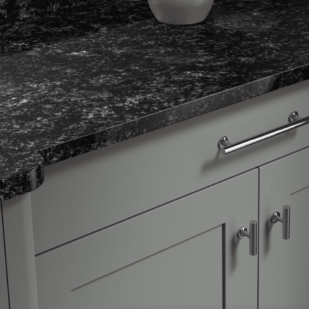 Home / Made to Order Worktops / Strata Quartz Bespoke / Strata Quartz Worksurface - Steel Grey Strata Quartz Worksurface - Steel Grey Made-to-Order £0.00 (£0.00) Description Strata Quartz Worksurface - Steel Grey Small naturally occurring fissures are common as is occasional veining, varying grains structure and slight pitting. Neither of these properties are defects in the material. Polished Finish Available in a 20mm or 30mm thickness Click here to complete your details for a quote Quartz Care & Maintenance Once in service… Your new quartz worksurface is a modern material which requires little day to day care. Clean the surfaces regularly with water containing soap or a mild detergent and a soft cloth or sponge. Rinse off surfaces with clean water. Polish dry with a soft cloth. Alternatively use the ‘E Cloth’ surface cleaning system for a consistent, smear free finish every time. Tougher stains can be removed by using a product such as Cif Actifzz with in conjunction with a plastic scouring pad. Avoid use of abrasive cleaning materials: scouring powders, steel wool, metal brushes, etc. Never use bleaches or chlorine based cleaners, acids, photographic development liquid, alkalis (caustic soda) or concentrated disinfectants on quartz surfaces. If any of these come into contact with the material, clean them off immediately, otherwise surface damage may occur. Do not allow surface deposits to build up on surfaces, e.g. powder detergents, mineral deposits and salts. Strongly coloured foodstuffs, such as blackcurrant and beetroot, can be difficult to remove from quartz surfaces, especially light colours. Use a cleaner such as Cif Actifizz and a plastic scouring pad. Always use pan stands and trivets to protect the surface from hot, rough and wet pots, pans and utensils. Direct contact from iron, steel, ceramic and copper vessels can scratch and stain the surface. Always use cutting boards to chop and slice food upon. Never cut directly onto the quartz surfaces. Never stand, sit or put heavy weights on the worktop, especially around sinks and hobs where the material may be weaker. Click here to view a video guide on Quartz Care & Maintenance For further information regarding the Strata quartz range, please call our sales helpline. 01257 446149 ( Option 1 ) Reviews Customer reviews No reviews left yet Write a review Sort byMost RecentTop Rated No reviews have been left for this product, be the first to leave a review