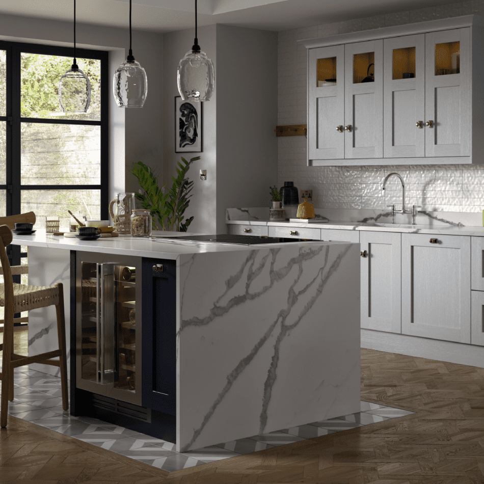 Home / Made to Order Worktops / Strata Quartz Bespoke / Strata Quartz Worksurface - Strata Statuario Quartz Strata Quartz Worksurface - Strata Statuario Quartz Made-to-Order £0.00 (£0.00) Description Strata Quartz Worksurface - Strata Statuario Quartz It is a composite material that is designed to appear as a naturally veined material but, typically this is more resilient, hardwearing and durable. A bold grey vein runs throughout the entire material, not just the surface. It is not always possible to match veins at joints. Polished Finish Available in a 20mm or 30mm thickness Click here to complete your details for a quote Quartz Care & Maintenance Once in service… Your new quartz worksurface is a modern material which requires little day to day care. Clean the surfaces regularly with water containing soap or a mild detergent and a soft cloth or sponge. Rinse off surfaces with clean water. Polish dry with a soft cloth. Alternatively use the ‘E Cloth’ surface cleaning system for a consistent, smear free finish every time. Tougher stains can be removed by using a product such as Cif Actifzz with in conjunction with a plastic scouring pad. Avoid use of abrasive cleaning materials: scouring powders, steel wool, metal brushes, etc. Never use bleaches or chlorine based cleaners, acids, photographic development liquid, alkalis (caustic soda) or concentrated disinfectants on quartz surfaces. If any of these come into contact with the material, clean them off immediately, otherwise surface damage may occur. Do not allow surface deposits to build up on surfaces, e.g. powder detergents, mineral deposits and salts. Strongly coloured foodstuffs, such as blackcurrant and beetroot, can be difficult to remove from quartz surfaces, especially light colours. Use a cleaner such as Cif Actifizz and a plastic scouring pad. Always use pan stands and trivets to protect the surface from hot, rough and wet pots, pans and utensils. Direct contact from iron, steel, ceramic and copper vessels can scratch and stain the surface. Always use cutting boards to chop and slice food upon. Never cut directly onto the quartz surfaces. Never stand, sit or put heavy weights on the worktop, especially around sinks and hobs where the material may be weaker. Click here to view a video guide on Quartz Care & Maintenance For further information regarding the Strata quartz range, please call our sales helpline. 01257 446149 ( Option 1 ) Reviews Customer reviews No reviews left yet Write a review Sort byMost RecentTop Rated No reviews have been left for this product, be the first to leave a review