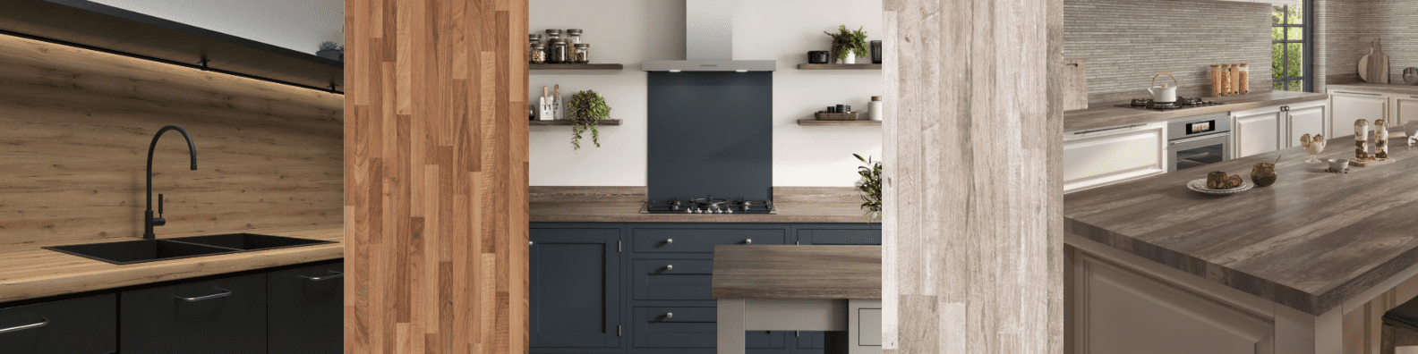WOOD & TIMBER EFFECT LAMINATE WORKTOPS.
